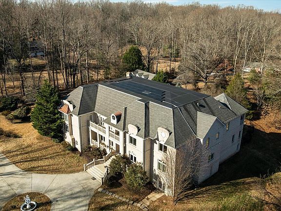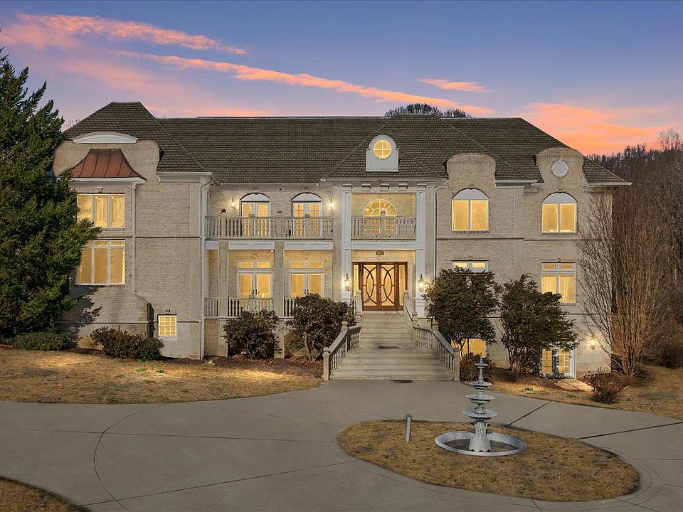 Unrivaled in scale and sophistication, this 17,000+ -square-foot manor represents the pinnacle of luxury living, where grand architectural ambition meets a surprisingly serene atmosphere. The journey begins at the entrance, where imported Spanish railings and granite stairs lead to a brick, granite, and stucco facade that exudes timeless beauty, complemented by four granite balconies adorned with architectural balusters. Inside, the home unfolds across soaring spaces anchored by rich Brazilian Cherry floors. The layout was thoughtfully designed to promote a sense of harmonious energy and intuitive flow. The formal living room and a separate family room command attention with nearly 20-foot ceilings and two imposing gas fireplaces, framed by towering walls of glass that invite natural light to flood the interior, further enhancing the home’s vibrant, airy feel. The heart of the home is a true epicurean’s dream, featuring a professional-grade kitchen equipped with a six-burner Wolf stove, Dacor and GE Monogram appliances, and a centerpiece granite island with a prep sink. This culinary hub is flanked by a sprawling breakfast room, a built-in Dacor coffee station, and a high-capacity refrigerator and freezer set. Nearby, a unique mudroom with its own fireplace—one of five fireplaces throughout the estate—offers a cozy transition from the epoxy-floored garage. In total, the home provides a 5-car garage capacity. (a 2-car attached and a 3-car detached), ensuring ample space for a private collection. The main floor also hosts a private office and a breathtaking two-story library, complete with a dedicated art and portrait gallery on the level above. The primary suite is a sanctuary of staggering proportions, encompassing over 1,776 square feet on the main level. This retreat features a vast sleeping chamber, a dedicated sitting area, an **expansive walk-in closet, and a spa-inspired ensuite bath with a steam shower, separate tub, and water closet. Upstairs, the grandeur continues with four additional oversized bedrooms: each is a suite** with its own private bath, with three leading out to private granite balconies. These rooms center around the upper mezzanine and are connected by extra-wide hallways that maintain the home's sense of openness. For added practicality, the home features laundry facilities on all three floors and an inspected, install-ready elevator shaft. The fully finished lower level is an unparalleled destination for wellness and recreation. It features a full-scale 960 sq. ft. professional gym and a comprehensive spa area with a sauna, steam shower, and multiple showers, all with easy access to your private inground pool and a wine cellar. Entertainment options abound with a large media room and several recreation rooms, perfect for hosting significant gatherings. This forward-thinking estate is rounded out with an energy-efficient geothermal system and sustainable solar panels, ensuring that while the lifestyle is grand, the home remains efficient and modern (average utilities are under $300/month). It is a masterpiece of architectural precision and positive energy, standing as a generational sanctuary where every detail provides a life of quiet prestige and absolute comfort.