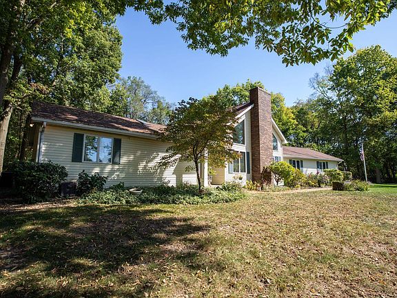 Welcome to this Dreamy Country setting with over an acre, surrounded by mature trees. Property is very well maintained, newer roof and water heater. Spacious kitchen cabinets in this bright, cheery, dine in Kitchen with red oak flooring. Home features 3 Bedrooms with roomy Loft area to use as needed and 3 Full and 1 half bath. The Great room features a Grand fireplace, with staircase that leads to the Loft. A Bright 4 Seasoned Sunroom with radiant heat in flooring; leads to a cozy, sunny deck. (Notice the sweet swing) Both areas perfect for game time or a great novel. Lower level has large finished area with new waterproof laminate flooring and ventless fireplace. Also a room for be used as office space or as needed and full bath.