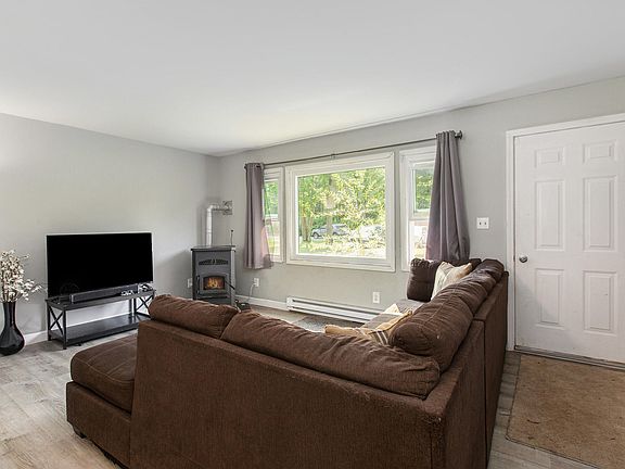 This cute 3 bedroom 1.5 bathroom home has been well maintained. 2-car attached garage. Pellet stove with baseboard heat as a backup source. 1200 square feet of total space on a slab with no cold floors in the winter. Renovated in 2016. New vinyl siding in 2014. New carpet throughout and garage door and opener replaced in 2015. Pressure tank and gauge reconditioned in 2015. New kitchen cabinets, countertops, and fixtures around 2017/2018. New roof and 9 inches of extra insulation and ridge vented in 2017. All new windows just put in this year. This home is move-in ready. Call for your private tour today.