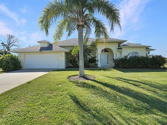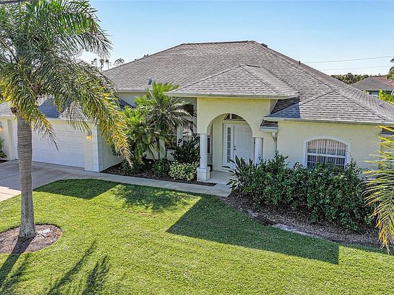Nestled in the heart of desirable Rotonda West—a fast-growing coastal gem just minutes from pristine Gulf beaches, world-class golf courses and vibrant shopping—this executive single-family home is a rare waterfront retreat on the serene Rotonda River Canal. Spanning three generous lots totaling over 0.79 acres with 279 feet of direct canal frontage, this southern exposure property offers unparalleled privacy, thanks to the adjacent vacant lots ensuring no close neighbors. Built in 2005 and meticulously maintained, this 2,131 sq ft haven blends timeless Florida elegance with modern comfort, ready for you to make it your forever home or seasonal escape not in a flood zone. Step through the grand foyer into an open-concept great room that seamlessly connects living, dining, and kitchen spaces, flooded with natural light from a full wall of sliding glass doors revealing a sprawling covered lanai, expanding your indoor-outdoor lifestyle and framing breathtaking views of the canal and lush landscaping. The kitchen is well-appointed with ample cabinetry and countertop space, complemented by a convenient breakfast bar. Perfect for casual mornings or hosting sunset soirées. Retire to the master suite, your private oasis with a cozy seating area gazing out over the pool and water. It features a large walk-in closet and a spa-like en suite bath with dual vanities, a jetted garden tub, and a walk-in shower for ultimate relaxation. Two additional spacious guest bedrooms provide comfort and versatility, while the guest bath impresses with dual sinks and direct pool access. Need a quiet workspace or fourth bedroom? The dedicated den/office provides the ideal flex space for remote work or overnight visitors. Outside, entertainment awaits on the massive pool deck, where a heated pool and inviting spa beckon year-round. Lounge on chaise chairs, fire up the grill for al fresco dinners, or simply unwind with a cocktail bar setup—the possibilities are endless. The attached two-car garage adds practicality, with room for all your beach toys and golf gear. Fully furnished and turnkey, this canal-front beauty combines low-maintenance luxury with Rotonda West's unbeatable lifestyle: kayaking from your backyard, teeing off at one of five nearby courses, or soaking up sun at Englewood Beach. With an easy drive to spring training baseball (Tampa Bay Rays and Atlanta Braves), world-class fishing in Boca Grande, and the 8.5-mile Cape Haze Pioneer Trail for biking and walking. This is Florida living at its finest—schedule your private tour today and sail into your new chapter!