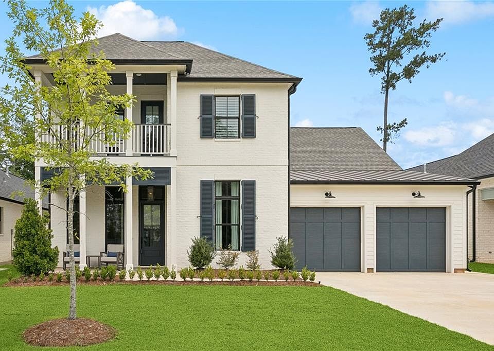 This stunning 2022 construction in the gated River Club Estates offers a blend of elegance and luxury, with custom accents, a French Quarter-style balcony, stunning wood floors throughout and lush landscaping in the front yard. In the MANDEVILLE HIGH School District!! Homeowners insurance under $3k/yr. The exterior features double garage doors, heavy-duty storm and Bermuda shutters, and gutters surrounding the home for added protection. Inside, the foyer impresses with an elegant staircase, high ceilings, and a large gas fireplace. The open-concept living room flows seamlessly into the gourmet chef’s kitchen, equipped with upgraded GE Cafe appliances, large quartz island, beautiful wood beams, a gas range, hood vent, dual ovens, and a butler's pantry with a beverage refrigerator and ice maker capability.