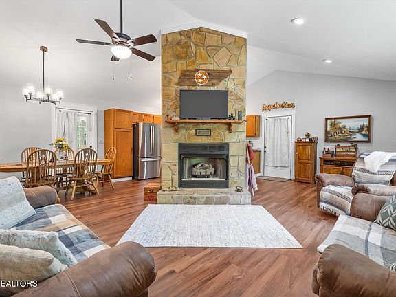 Beautifully remodeled home located across from the Smoky Mountain Golf Course. Home features on the exterior include a new roof, freshly painted porch and covered deck. Under the deck has been painted as well as all three set of steps. There are some landscaping improvements. The interior features vaulted ceilings with a beautiful floor to ceiling gas fireplace centering the open floor plan between the living room, kitchen and dining rooms. The flooring is all new with new windows and granite countertops! The house also comes with all new appliances and AC unit still under warranty!