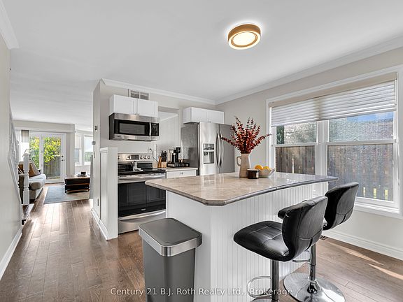 Attractive end-unit townhouse condo in desirable South Windsor! One of only nine units in the complex! Open concept main floor area featuring sizable living room connecting to bonus sun room. Enjoy the eat-in kitchen and the convenience of a main floor powder room. The entire second floor has been upgraded with new engineered hardwood flooring, and features a generous primary bedroom with walk-in closet, cheater ensuite bathroom with private vanity area, and walkout balcony. The second bedroom features double closets and Juliet balcony. The partially finished basement includes a recreation room with adjacent wet bar area, and a large storage/laundry room. Single car garage with inside entry and rear yard with patio area. You will love the privacy of this property with no rear neighbours. Perfect location, in close proximity to schools, shopping, the EC Row Expressway and the Huron Church/401 corridor. Immediate possession available!
