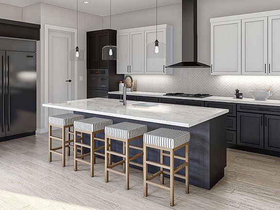The flexible four-level layout includes a main-level bedroom with full bath, flex space, and attached garage. The second floor offers an open-concept kitchen with island, dining area, breakfast nook, and living room with access to a covered deck. The third floor features two spacious primary suites, each with walk-in closets and private baths, plus a convenient laundry area. The penthouse level provides a rooftop retreat with optional wet bar and lounge space.