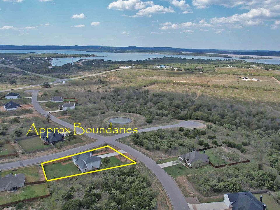 Embrace the leisure of lake living at Water Ridge Estates where every day feels like a getaway. Nestled on a beautiful corner lot within a gated community, this elegant home boasts 4 spacious bedrooms, each graced with a private bath, ensuring personal retreats for all. Approaching the property, you'll be captivated by landscaped grounds with an automated irrigation system & stylish fencing. The residence features a large, attached RV or boat storage garage. Imagine unwinding on the generous back porch, ideal for entertaining amidst tranquil views. Inside, the home exudes sophistication with custom cabinetry & designer finishes, creating an atmosphere of refined comfort. The thoughtful layout includes a grand living area that flows seamlessly into the gourmet kitchen, for memorable events & gatherings. Water Ridge ownership includes exclusive access to amenities: community swimming pool, community center, boat ramp,courtesy boat slips, so Possum Kingdom Lake fun is always within reach.