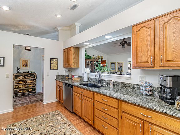 Beautiful Remodeled Raleigh Model with Spectacular Golf & Water Views located in a Military Private Country Club Community. This home is on a prime location on a cul-de-sac that offers golf views in the front, and you also get a gorgeous view of water and golf in the back. This meticulously maintained home makes you feel like you are in a museum. It showcases remodeled bathrooms. kitchen, crown molding in the main area, and custom retractable blinds in the Florida room.
