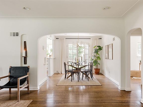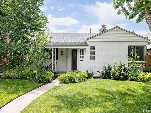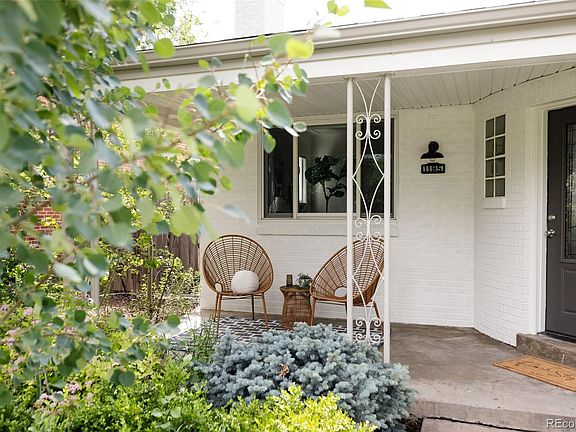 Thoughtfully updated 4-bed, 2-bath brick ranch on an oversized double lot in sought-after Cory-Merrill. Set back from the street and surrounded by mature landscaping, this home offers rare privacy, charm, and space inside and out. Freshly painted inside and out, with updated lighting and hardware throughout, it feels bright and effortlessly stylish. A covered front porch welcomes you—perfect for morning coffee or evening cocktails—and sets the tone for the comfort within. The living room features original coved ceilings, built-in niches, and a classic brick fireplace. Beautifully maintained oak floors run throughout the main level, adding warmth and timeless appeal. The dining room seats six and opens through French doors to a fully fenced backyard, ideal for indoor-outdoor entertaining. The refreshed kitchen blends charm with modern updates: painted cabinetry, quartz countertops, and updated hardware and fixtures. The main-floor primary bedroom is a peaceful retreat with corner windows and space for a king bed. A second upstairs bedroom fits a queen bed but is also ideal as a home office, with custom-built-ins offering excellent storage. The updated full bath includes a double vanity with new quartz countertops, heated floors and a walk-in shower. The finished lower level nearly doubles the living space with a large family room, second fireplace, new carpet, and two conforming bedrooms with newer egress windows. Multiple closets and a generous laundry room with utility sink provide everyday functionality. Out back, the large, landscaped yard invites relaxing, gardening, or entertaining. An oversized two-car garage with alley access adds more flexibility and storage. Located in one of Denver's most prized, tree-lined neighborhoods. Just minutes to Cherry Creek, Wash Park, and easy access to I25. Welcome home.