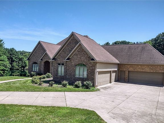 This ranch home on over 4 acres offers a tranquil setting away from the road and overlooking a backyard pond. Built in 2008, this home features an eat-in kitchen, formal dining room, sun room, great room with fireplace, three bedrooms with private baths and walk-in closets, a finished basement, and 5-car garage. Showing days and times are limited. Seller requires delayed possession (30-60 days).