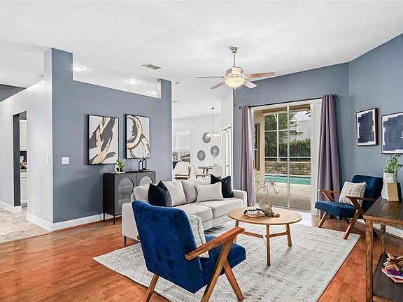 This is the Winter Park pool home you’ve been waiting to find in the small and upscale Lost Creek neighborhood. Beautiful custom low maintenance landscaping (no grass to mow) welcomes you as you walk up the front path to the covered porch. Soaring vaulted ceilings inside will impress as you enter this lovely 3 bed, 2 bath abode with pool and spa and over 1,900 sq ft of living space. Wood flooring is found in the formal dining and living rooms with views through the glass sliders out to the covered lanai and screen-enclosed pool and spa. Attractive neutral stone-look ceramic tile flows through the updated kitchen with all NEW stainless-steel appliances (Sept 2025), granite counter tops, and breakfast nook overlooking the pool. The family room is a causal place to spend time with its wood-burning fireplace with stacked stone surround and built-in bookshelves flanking each side. A split layout offers 2 guest bedrooms, full hall bath, and inside laundry room off the kitchen side of the home; while the spacious primary bedroom is separate, with a huge walk-in closet (10’ x 5’), double French doors leading to the lanai, separate en-suite with double vanities/sinks, private toilet room, and large walk-in shower. Imagine al fresco dining or lounging poolside under the covered lanai and screen-enclosed pool patio area, and there’s plenty of side yard space for a garden or dog run. Improvements to the home include all NEW kitchen appliances and hot water heater 2025; NEW garage door spring and mechanisms 2024; NEW barn door installed to primary bathroom 2020; NEW HVAC 2019; Roof 2015; plumbing CPVC. Zoned for fantastic Seminole County Schools. This is the house you’ve been waiting to find and call HOME.