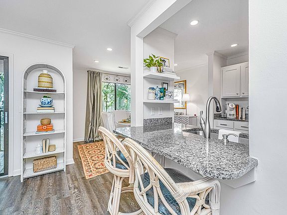 Welcome to 1185 Village Creek Lane #3. This super cute 2 bedroom, 2 bath condo is located in the heart of Mount Pleasant. Walk to multiple shops and restaurants or a short drive to pristine beaches and/or historic downtown Charleston. This condo has been recently updated with LVP flooring throughout, white kitchen, granite counter tops, freshly painted walls and more. Walking through this home, you will love the open floor plan with great site lines to all rooms. The spacious family room has a fireplace and access to the screen porch. Both bedrooms have access to the outside porch great for enjoying a cup of coffee or reading a book. The primary bedroom has its own ensuite bath and walk in closet. Village Creek has a community dock with access to Shem Creek and a swimming pool for allto enjoy.
