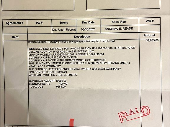 - Utilities for property: Electricity Connected, Natural Gas Connected, Sewer Connected