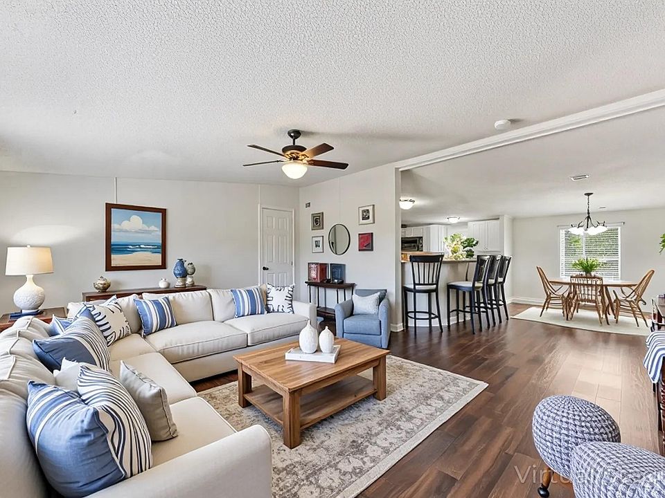 Modern upgradesWarm wood-style flooringOpen floor planNew windowsQuiet acreNatural lightGravel setup