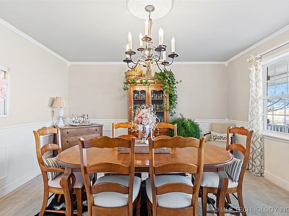 A unique opportunity to enjoy refined country living within Owasso city limits. This serene 2.74-acre estate offers the charm of real life with the convenience of nearby amenities-and supports horses, cows and chickens. The main residence exudes quality craftsmanship with granite surfaces, custom knotty alder cabinets, crown molding, and rich hardwoods. With 4 bedrooms, 2 baths, formal & casual living spaces, the floor plan is both functional and elegant. A beautifully converted barn provides a second private residence-an exceptional space for multi-generational living, guest lodging or rental income. Relax outdoors beneath the extended front porch or pergola, gather by the backyard fire pit and enjoy the beauty of mature pear and pecan trees. This remarkable property blends comfort, versatility and rustic elegance.