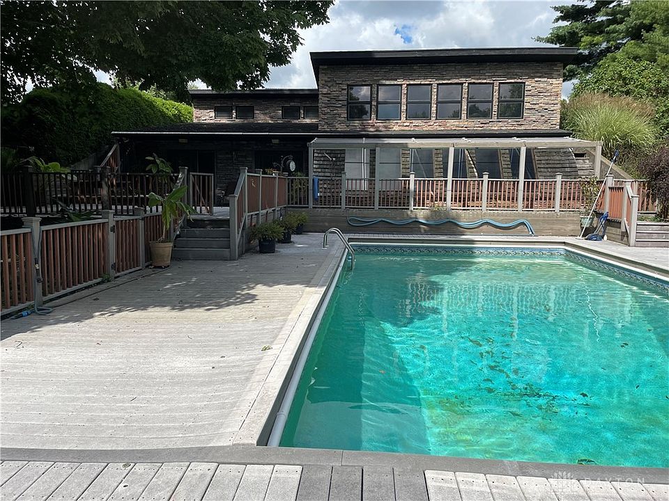 Check out this unique property with all fresh paint and facilities for livestock! This 3 bed 2 full bath home is positioned on 11.6 acres with some woods, nice hardwood trees, a small barn with paddock, an attached 3 car garage w/workshop & loft, an inground pool, dog shed, 4 decks with amazing views and a path to a nice field! The Master bdrm has ensuite bath, huge closet, linen closet & access to deck & pool. There is also an attached 35X27 two story insulated barn w/12X27 loft that could become living space, the possibilities are endless! You enter the main house via an underground tunnel! The tunnel opens up into a huge great room w/builtins, dining room, an enclosed 4 seasons room, floor to ceiling wall of windows and an antique wood burner to take off the winter chill! The sun room overlooks the pool and several decks, which is perfect for entertaining! There are SS appliances in the kitchen, Solar panels on the barn to help with utilities, skylights in several of the rooms and lots of storage. The 3 stall garage is 48X24 w/storage loft and all three doors have openers. The workshop w/electric has exit door to outside and an entrance into the barn. There is a fenced courtyard, beautiful landscaping, lots of space for entertaining & mature trees. This could be your home where you can take a dip in the pool, take a walk in the woods or enjoy the 4 seasons room with a cup of coffee! Make an appointment today!