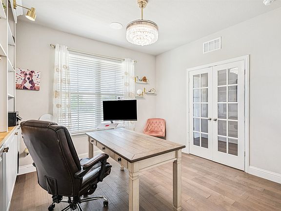 Welcome to 11852 Toppell Trail, a stunning minimal neighbor home in the desirable Wellington. This residence combines modern upgrades, energy efficiency, and smart home technology with a thoughtful open-concept design. From the moment you arrive, the brick and stone façade, along with the covered front porch, creates exceptional curb appeal. Inside, the home features high-end finishes and upgrades. Hardwood floors flow seamlessly throughout, while the expansive great room connects effortlessly to the kitchen and dining areas, making entertaining a breeze. The gourmet kitchen features a farm sink, gas cooktop, stainless steel appliances, and a vast island with seating. Every detail was designed with convenience in mind, including smart switches and lighting allowing you to set the perfect ambiance with the touch of a button or voice control.