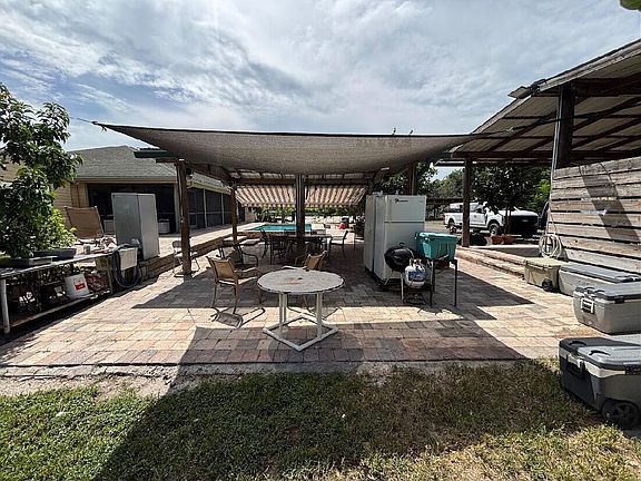 Beautiful home completely renovated electric gate with a 6 stall barn with back paddock, front pasture, groomsman's quarters, salt water pool, cabana with attached electric awning. Cameras throughout the whole house. Sprinkler system, Gutters, 2 containers one is feed room the other is a tack room with a/c and a rooftop between the containers for extra storage of hay or toy parking. Getting underground electric in the next year already paid for. New AC in the house, new drain field and updated water system and tankless water heater. Porch has a full extra kitchen. RV hookup Impact Windows and doors are new. Also available the lot adjacent to the west which is a high and dry currently used as a lighted riding arena with a 4 stall barn.