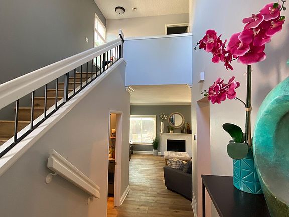 A spacious 3 bedroom, 2.5 bath duplex house with a garage, carport, lush private backyard with Carolina Cherry trees, an attached red wood garden pergola, and a front yard with a lime tree. House features new Oregon Oak SPC floors and new paint throughout the house. Downstairs half bath is newly updated. Kitchen has all stainless steel appliances with brand new oven range and 3 rack dishwasher. As you first walk in, the house welcomes you to a newly finished beautiful stairway with high vaulted ceilings. Large updated kitchen opens up to a spacious den area that can be used as a second living room, play area, office space, a breakfast nook, or a combination of the above. The other side of the kitchen leads to a formal dinning area and a cozy living room with a white brick fire place. A large master bedroom with an updated en-suite bath, two other spacious bedrooms and a separate full bath are located upstairs. The House Features: - Open concept large updated kitchen with wall to ceiling pantry cabinets, granite counter tops and modern appliances. The kitchen was just updated with a brand new convection gas range with AirFry oven and a griddle burner and brand new 47dBA tall tub dishwasher with third level rack. - Upstairs and downstairs floors recently updated with extra wide pure SPC flooring with beveled edges from Oregon Oak Collection. - New modern paint with accent walls throughout the house. - Energy efficient and functional dual & triple pane windows & downstairs slider. - Built in bookcase in office/breakfast nook area. - Washer/Dryer in home Available 6/01/22 Utilities not included. No smoking allowed. Cats and small dogs allowed.