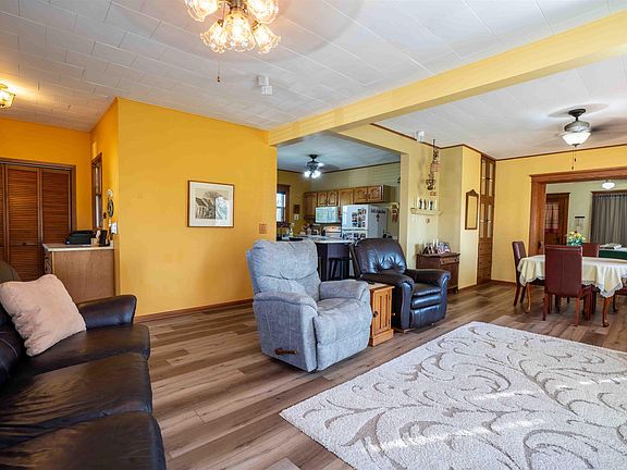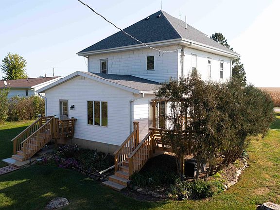 Acreage living in Aplington Parkersburg school district with 4-5 bedrooms and 1-3/4 baths. Beautiful setting on 2.86 acres with generous home, outbuildings and private wooded area. The home's main floor offers open living, dining and kitchen areas with pocket doors to main-floor bedroom OR parlor. The adjoining updated 3/4 bath features separate room with laundry. Front porch currently used for storage, but provides a beautiful area to enjoy morning sunrises with your coffee. Upstairs you are greeted with 4 spacious bedrooms, updated full bath and access to a large attic for possible future living space. Updated shingles, some windows, all flooring, baths and both decks. Detached machine shed utilized as 3-stall garage and workshop.