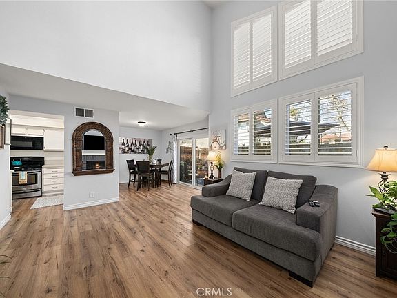Discover tranquility in this stylish 2-bedroom, 2.5-bathroom vaulted ceiling townhome nestled within a serene gated community. Meticulously upgraded throughout, this home boasts premium flooring, recessed lighting illuminating the kitchen, elegant shutters, plush new carpeting, and energy-efficient dual-pane windows. Bathed in natural light, the interior exudes warmth and comfort. Enjoy the convenience of easy access to freeways and shopping centers. Plus, indulge in the HOA amenities including a sparkling swimming pool and rejuvenating spa. Welcome to your haven of refined living.