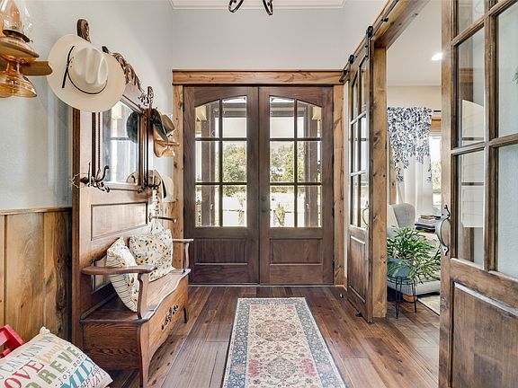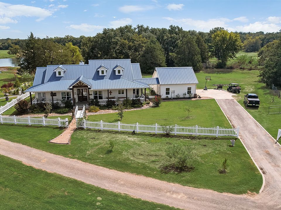 Rockin B Farm 35 miles to Dallas sits on luxurious 77 acres offering 2 Modern Farm Homes built in 2020 of serene country living. This stunning gated property offers rolling hills, peaceful nature and beautiful sunsets, 4 ponds, lush pastures for livestock grazing with Metal Barn and Shed-Shop on concrete slab. Cross over bridge to enter first home of 2,439 sf with 3 bedrooms 2 baths, Wrap around porches, open floor plan for entertaining, high end appliances, soft close drawers, screen door pantry, pot fillers and large island with beautiful granite that flows through out with wood floors overlook family rooms. Wood ceiling and mantles in family room and patio hand picked tree from Oklahoma. Secluded Master suite with outside entry doors. Huge laundry room with cabinets, sink and MUD area to outside. Second home of 3,538 sf has 4 bedrooms 3.5 baths with wrap around porch and sitting area on front porch. Enter through Iron glass doors to stained concrete floors, open floor plan with gorgeous granite throughout home. Beautiful wood cabinets and massive island in kitchen. Master suite has door that leads to patio. Master bath adjoins laundry room with concrete counters, cabinets and storage closet. Above garage with staircase leads to Man Cave-Bonus room with own bath. Large family room with Stone fireplace leads through French doors to outside entertaining with massive patio and pool. Gorgeous flowers gardens with walkways to pond. So much detail see Feature Sheet in Transaction Desk. Please only show qualified buyers with pre-approval. Information deemed reliable. but Buyers & Buyers Agent are responsible for verifying all information.