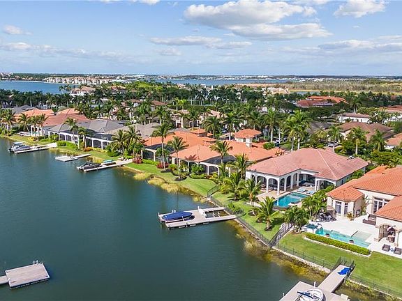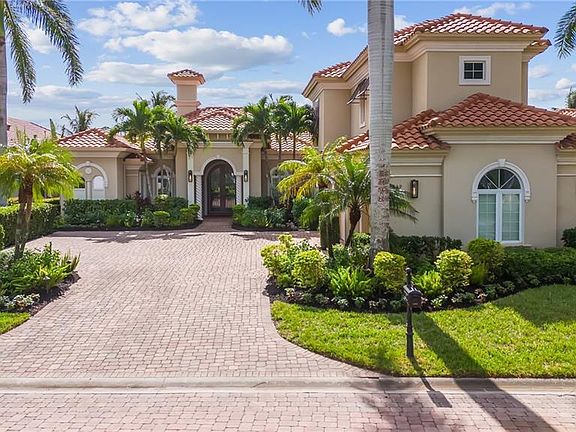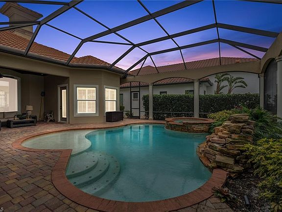 This luxurious 5-bedroom, plus den, 6.5-bathroom home is the epitome of elegance and comfort, offering over 4591 Sqft under air of meticulously designed living space. With exquisite attention to detail, this property features an expansive open-concept floor plan, perfect for both everyday living and entertaining. The gourmet kitchen boasts a large center island, and custom cabinetry, all complemented by beautiful countertops. The spacious great room with soaring ceilings and panoramic windows allows for an abundance of natural light, while providing breathtaking views of the private pool and spa overlooking a fabulous water view. The master suite is a true retreat, offering a spa-like bathroom with dual vanities, a soaking tub, and a walk-in shower, along with a custom-designed walk-in closets. Each additional bedroom is generously sized and comes with its own en-suite bathroom, ensuring comfort and privacy for family and guests. Step outside to your own tropical oasis, featuring a resort-style pool and spa, expansive lanai, and ample space for alfresco dining and entertaining with and outdoor fireplace. The lushly landscaped yard provides a serene setting, perfect for enjoying Florida's beautiful weather year-round. Additional highlights include a private den/office, 3-car garage, and a bar area. Located within the gates of Miromar Lakes Beach & Golf Club, residents enjoy world-class amenities including a private beach, marina, golf course, tennis courts, and more. This home offers the ultimate in luxury living. Schedule your private tour today! Key Features: 5 Bedrooms + Den, 6.5 Bathrooms Gourmet Kitchen with counter bar and eat in kitchen Master Suite with Spa-Like Bathroom & Custom Closet Resort-Style Pool & Spa Expansive Lanai with Outdoor Kitchen 3-Car Garage Tankless hot water tank Miromar Lakes Beach & Golf Club Amenities
