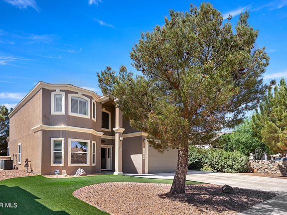 The kitchen has been remodeled to perfection, featuring easy-care luxury countertops, Retreat to the opulent master suite, where you'll find built-in storage, a sprawling covered balcony patio, an expansive walk-in closet, a spacious shower, and a clawfoot tub and heated floor, for indulgent relaxation. Step into the backyard oasis, perfect for entertaining with its inviting pool for summer relaxation and a heated option for cooler days. Approximately 3 mins from I-10 and approximately 33 mins from Ft. Bliss.