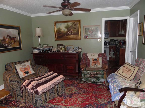 A true working farm. This property consist of approximately 14 acres that include a 2 bedroom, 1.5 bath remodeled brick farm house. Updated kitchen & baths. Home sits on 2.3 acres w/approx 12 additional acres of pasture which is fenced & cross fenced with 7 stall barn that has tack & feed room. Barn has electricity, water & hot water heater. There are 2 grain silos on the property. Property has established pastures w/water in each pasture. There are several smaller out buildings. No restriction on property.