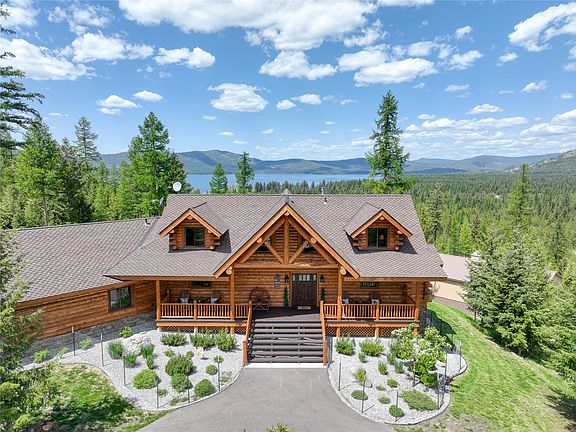 Offered is a stunning 3 bedroom, 3.5 bathroom, 4306 sq ft home on 8.75 acres with breathtaking mountain views of Bitterroot lake and the lush surrounding forest. This 2017 Meadowlark custom built log home highlights the impeccable attention to detail and craftsmanship of the traditional Amish techniques, that truly make it one of a kind. This immaculate home includes all remaining hand selected custom interior furniture, appealing to the most discerning buyers. The majesty of nature is ever-present as each window brings the outdoors in, providing a seamless blend of indoor and outdoor living. With professional landscaping, private gated entry and paved driveway, this unique property is truly the pinnacle of luxury living. Recent improvements include a spacious 52'x30' shop space for your toy and storage needs and a new outdoor 2400 sq ft patio fire pit space for entertaining guests and making memories! This property has it all, Escape to Marion, Montana and make your dreams a reality. Listed by Eric Perlstein/Brandon Trust