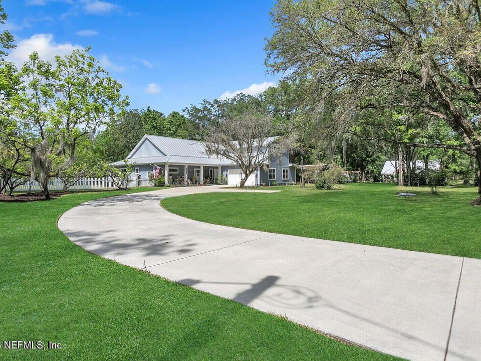 Welcome to this spacious 4-bedroom, 3-bathroom home featuring a stunning kitchen with double ovens, walk-in pantry plus an additional dry pantry for all your appliances and large island designed to entertain friends and family! The home showcases beautiful 6''x36'' wood-look tile throughout, vaulted ceilings, and a split floor plan. Enjoy the privacy of both a primary suite and a separate guest suite, along with two additional bedrooms on the main floor. Relax in the cozy Florida room, or head upstairs to the large loft—perfect for a game room or additional bedroom. This home is equipped with a generator, tankless water heater, 17'x13' storage room with built-ins upstairs, and is situated on one acre in St. Johns County. Zoned Open Rural-so you can bring your toys and animals! Be sure to check out the pool renderings in the photos and start imagining your dream oasis.