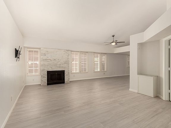 Welcome to your next adventure in comfort and charm! This delightful 3-bedroom rental invites you in with vaulted ceilings, wood-look floors, plantation shutters, and a bright living room w/a wood-burning fireplace. The eat-in kitchen showcases built-in appliances, quartz counters, white cabinets, a handy pantry, and a peninsula w/a breakfast bar. The main bedroom is a restful retreat with its private backyard access and bathroom comprising a jetted tub, dual sinks, and a walk-in closet. Outside, the serene backyard offers a covered patio and plenty of space! Close proximity to the Stone Creek golf course, HOA does the front yard landscaping, and enjoy the HOA pool! Close to the 51 freeway and paradise valley mall. Residents are part of the Scottsdale school district. Don't miss this!
