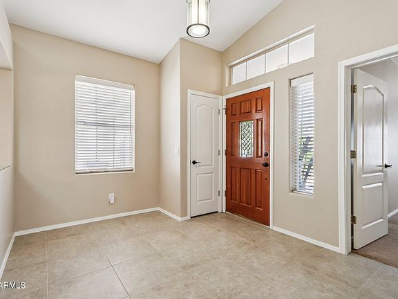 Welcome to this beautifully cared-for single-level residence in the sought-after community of Stonehaven. This home showcases thoughtful upgrades & a layout designed for both everyday living & entertaining. Step inside to find vaulted ceilings, updated lighting, ceiling fans & newer 24x24 porcelain tile in all high-traffic areas. The open concept floor plan creates seamless flow between the formal dining room, kitchen & family room. The kitchen features stainless steel, fingerprint-resistant appliances, granite countertops, upgraded cabinet fronts, a walk-in pantry & a skylight for added natural light. The family room features an upgraded 8' Anderson French door with side glass panels, leading out to the covered patio & backyard. The split floor plan offers privacy & function... with a spacious primary suite that includes a charming bay window, dual vanities, a soaking tub, walk-in shower with glass doors & a generous walk-in closet. Two additional guest bedrooms are ideal for a family or guests. The bonus room adds versatility ideal as a home office, playroom, or potential 4th bedroom. Outside, enjoy desert landscaping in the front yard with a mix of lush grass in the backyard, PLUS a covered patio.
