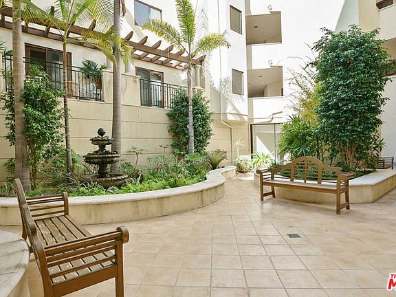 Prime Brentwood location in secure luxury building! Featuring one of the most incredible oversized private patios in Brentwood. This ground floor unit is ideal for California indoor/outdoor living. Amenities of the building include weekday concierge, fitness center, conference room, charming courtyard. Enjoy picturesque views on the roof top deck. This spacious single level unit has two generous master suites! Primary ensuite bedroom with custom walk-in closet and an oversized patio with a private entrance. Second ensuite bedroom has access to the light and bright patio. Expansive living room with inviting fireplace and French doors that lead to oversized patio. Large dining area with hardwood floors and crown molding throughout the unit. Kitchen features stainless steel appliances, white cabinetry, and modern countertops! Laundry in unit with full size LG washer and dryer. 2 single side by side parking spots with locked storage area in covered garage with extra spaces for visitors.