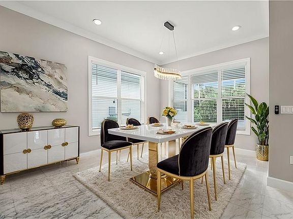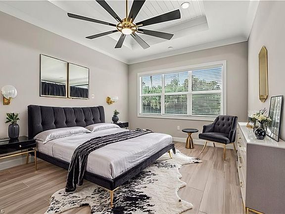 Spectacular never lived in LUXURY home in highly desirable Valencia Trails where one lives a fabulous and carefree resort lifestyle. Very private and peaceful PRESERVE view with no neighbors in the back. Most popular Nautilus floorplan. The seller did upgrades over $200,000 plus put in the pool, spa and extended lanai. Gorgeous home with LOTS OF UPGRADES featuring 3 bedrooms + a den, 2 1/2 bathrooms, 2 car plus a golf cart garage. Saltwater SWIMMING POOL & SPA just got finished. Stunning designer chandeliers & light fixtures will impress even the pickiest buyers. Tile floor throughout (no carpet). Shiplap walls and ceilings create elegance and luxurious feel. Spacious living room with built in bar, built in speakers, shiplap ceiling, luxury light fixtures - perfect for entertaining family & friends. Gourmet kitchen with large island, soft-close cabinets and drawers, quartz countertops, top layer glassed cabinets, gorgeous backsplash, stainless steel appliances, gas stove & chimney hood. Master suite features gorgeous ceiling, spacious his & her closets & a master bath with dual sinks & loads of cabinets. Multi-cycle heavy duty washer & dryer, extra cabinets, sink, gorgeous backsplash. Impact windows & doors. Designer brick pavers on driveway, entry walkway. Large covered & uncovered lanai with travertine pavers for luxury outdoor living. Lanai is stubbed for outdoor kitchen. Valencia Trails with newly built clubhouse features 160 acres of pristine preserve & over 3 miles of walking trails, perfect for outdoor lovers. 55+ very active community, lots of exciting events, conveniently located just minutes away from the best shopping, dining & white sand beaches.