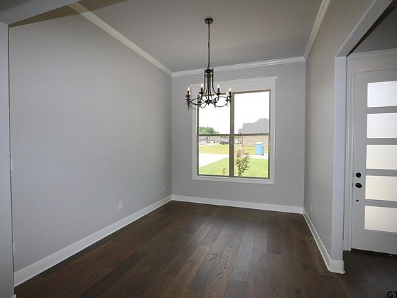 This SOUTH TYLER NEW CONSTRUCTION HOME is located in a serene country setting just minutes from everything that South Tyler has to offer! Outside city limits, but developed with city water and sewer, ROYAL VISTA ESTATES is a planned development on CR 178 and very close to Tyler Athletic & Swim Club with no HOA or dues! This home has 3 bedrooms, separate dining room, gourmet kitchen, 2 bathrooms, and 2 car garage. Featuring many high-end amenities including solid countertops, custom cabinets, gas cooktop, designer lighting, detailed moldings and trimwork, fireplace, wood and tile floors (no carpet), shower and separate garden tub in master bath, 13' ceilings and more. There is an amazing covered patio to enjoy the sprinklered yard with privacy fence! Welcome to YOUR new Home!!
