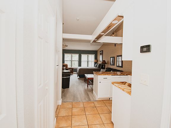 Unit is fully furnished and boasts custom wood countertops, accent wood lighting, jacuzzi tub, 50" Roku TV, kitchen amenities, washer and dryer, king bed, and much more.