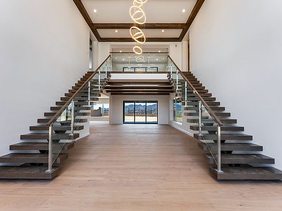 Welcome to 11864 W Tudor Court, a stunning Skyline Sunset model home located in the prestigious Westcliffe gated community in Porter Ranch. This exclusive corner lot boasts 5,469 square feet of luxurious living space on a 13,885 square foot lot, offering breathtaking panoramic mountain and city lights views. Upon delivery, the exterior features a saltwater pool, spa, sunken fire pit, and meticulous landscaping, creating an outdoor oasis perfect for relaxation and entertainment. Inside, the home is adorned with elegant European white oak flooring and over $300,000 in custom upgrades. The chef's kitchen is equipped with Wolf appliances, a Cove dishwasher, and a SubZero refrigerator. The laundry room is equipped with a Whirlpool washer and dryer. The home showcases beautiful wood floors and a statement modern dual spine staircase with glass railings. The first floor includes an en-suite bedroom and an office space. The second floor features a large loft leading to an outdoor covered deck, three additional en-suite bedrooms with walk-in closets and bathrooms, and a primary bedroom suite with a freestanding soaking tub, glass-enclosed oversized shower, and an enormous walk-in closet. This exceptional home is available for purchase or lease, offering a rare opportunity to experience high-end living in one of Porter Ranch's most exclusive neighborhoods. Don't miss your chance to call this magnificent property your new home. Schedule a viewing today! 5 Bedrooms plus Office & 5.5 Bathrooms. Renter will pay all utilities. There is an owned set of solar panels so a credit will appear on LADWP for what's generated by the system the difference is what's paid by the tenant. The tenant is responsible for gas and water as well.