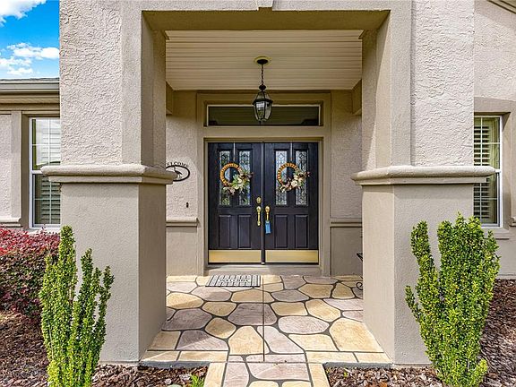 Step into a world of refined elegance and modern comfort in this exquisite 2270 sq. ft. Granville model, (the square feet include the large lanai under heat and air). Beautiful crown molding in the main areas of the home. The heart of this residence is the gourmet kitchen, where culinary dreams come to life. Gleaming granite countertops, pristine light cabinetry, and top-of-the-line stainless steel appliances with dinette area, create a space that's as functional as it is beautiful. The open concept living and dining area invites relaxation and entertainment, with ceramic tile and warm wood floors and large windows with beautiful plantation shutters that bathe the space in natural light. Retreat to the tranquil primary bedroom, a generous 220 sq. ft. sanctuary featuring plantation shutters and rich engineered wood flooring. The en-suite bathroom boasts a spa-like ambiance with a spacious vanity and double sized glass-enclosed (updated doors 2019) shower, no tub) A second bedroom and bathroom provides comfort and privacy for guests or family members. A dedicated office space provides the perfect environment and has French doors. The property also features a convenient spacious laundry room and loads of storage cabinets. Embrace indoor-outdoor living with the large lanai/Florida room, and outdoor brick paver patio where you can sip your morning coffee while enjoying views of the private surroundings. The garage is extended and has a golf cart area or use for storage or a workshop. The roof shingles were replaced in December 2021, the mini split air conditioner and heater were new in March 2021, the HVAC system for the house was new in October 2015. Attic plumbing was replaced in Jan. 2020 water heater replaced Jan. 2022. Solar attic fan, solar tube in living room. Front door glass panels new in 2009. Well maintained home. The home is surrounded by all block and stucco homes in the beautiful Sherwood neighborhood with close proximity to the back gated entrance of the community. This home is more than just a place to live; it's an invitation to elevate your lifestyle and make every day feel like a luxury retreat.