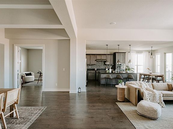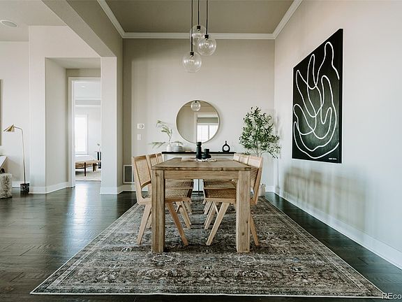 This home is perched above a cascading greenbelt of quiet open space, and is perfectly angled to capture sparkling views of the city lights and mountains. As an upgraded ranch-style home in an upscale planned community, you can enjoy a refined oasis with the tranquility of Parker living. The main floor areas flow seamlessly from the entryway to the dining room, living room, and kitchen. With a spacious island for barstools, and an eat-in nook, there is space to cook together and grow your recipe book. The living room is an ideal place to absorb the views while you're warmed by the gas fireplace. Sip drinks together on the covered patio while watching wildlife, or entertain on the new expanded lower level deck.