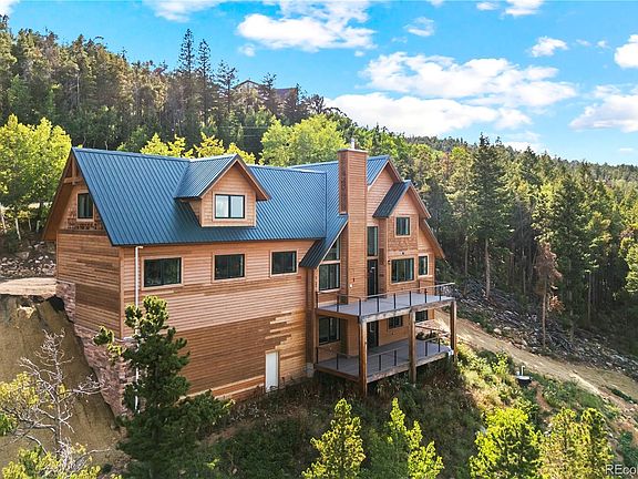 Step into mountain luxury in this custom built home. City and Mountain Views await you on the large composite deck off the main level and basement level complete with stainless cable railings. Step inside to the open concept kitchen featuring new in 2025 stainless steel appliances and granite countertops. All floors and shower seats in the home are heated with a top of the line radiant heat system. The impressive living room features a wood burning fireplace and soaring vaulted ceiling. The primary bedroom is conveniently located on the main level and boasts a 90 gallon soaker tub and walk in shower in the primary attached bath. The half bath located conveniently on the main level is perfect for guests. Upstairs you will find 2 large bedrooms and a gorgeous 3/4 Bathroom. A few stairs up from the upper level you will find a huge family room with vaulted ceilings and views. The downstairs level has one more non conforming bedroom / office, a 3/4 bathroom and game / rec room with pellet stove for efficient heating. This home has a new septic system, Impact & fire- resistant metal roof, R 36 insulation (all exterior walls), Sierra Pacific high efficiency windows, drainage ports in front of the house, whole house water filtration system, 1,000 gallon propane tank, high efficiency heat system, 8 foot custom doors, ecobee remotely controlled thermostats (13 zones), and the kitchen appliances and garage door can be controlled remotely. Most finishes in this home have been completed in 2024 and 2025, so it feels like a newly built home. This house is a must see for the high quality finishes, thoughtful build / floor plan, and views. Conveniently located in coal creek canyon for an easy commute to highway 93.