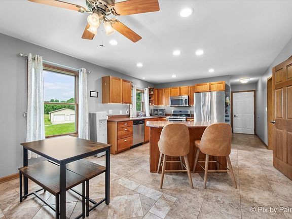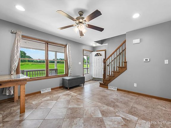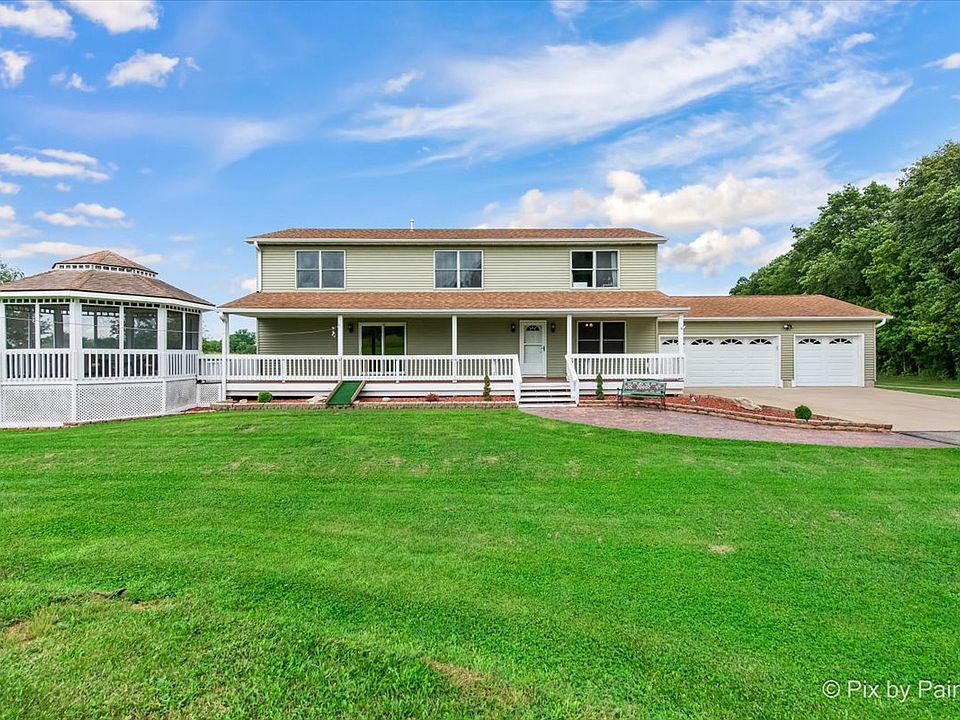 Welcome to your dream escape-an extraordinary 11-acre estate where wildflower-lined walking paths and sweeping views create a private sanctuary like no other. This stunning two-story farmhouse offers the perfect blend of luxury and nature, with 4 oversized bedrooms plus a 5th bedroom in the basement, and 2.5 bathrooms. Step inside to a formal dining or sitting room ideal for morning coffee or elegant gatherings. The heart of the home is an open kitchen and family room, featuring natural cherry cabinetry with soft-close doors, granite countertops, and a spacious walk-in pantry with a glass door. Retreat to the first-floor master suite with a generous walk-in closet and sliding doors leading to the front porch-perfect for taking in the picturesque scenery. All bedrooms are thoughtfully designed for comfort and space. The spacious, sunlit finished basement includes a fifth bedroom, lookout windows, a walk-out entrance for abundant natural light, and is stubbed for an additional bathroom-offering endless possibilities for customization. Enjoy outdoor living on the expansive wrap-around porch, deck with gazebo, and oversized 3-car attached garage. The property includes a large outbuilding with running water, an additional building, and a one-of-a-kind dog run. Experience unmatched privacy and tranquility in this rare, breathtaking enclave-your perfect country retreat awaits!