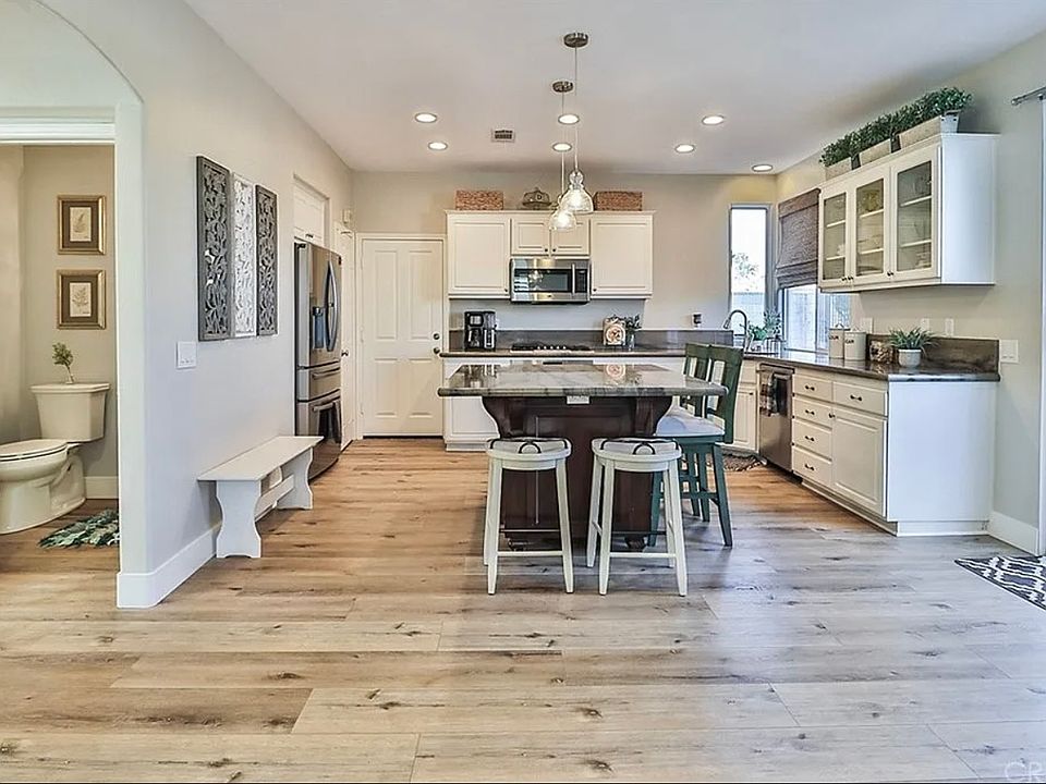 This stunning three bedroom Mediterranean home located in the much sought after Mirabella neighborhood is spectacular from top to bottom! Gorgeously upgraded with quality materials & designer touches throughout. Desirable & open floor plan featuring a formal dining area and formal living room. Spacious, remodeled gourmet kitchen with custom white cabinetry and an oversized center island with bar seating, gorgeous granite counter tops, stainless steel appliances, a large walk-in pantry & much more! The kitchen is open to a spacious family room with louvered shutters. Upstairs you will find a primary bedroom with a gorgeously remodeled ensuite bathroom and a spacious walk-in closet with custom organizers. This spectacular home offers many upgrades throughout, including: luxury vinyl flooring, upgraded chandeliers and recessed lighting throughout, beautifully remodeled powder bathroom & much more! Two secondary bedrooms share a Jack-n-Jill bathroom. Indoor laundry room conveniently located upstairs. Private backyard with patio & large grassy area with plenty of space for a swing set & trampoline! Direct access to a two car garage. Family friendly neighborhood with resort style community pool, spa & clubhouse. Close to award winning schools, parks & shopping. Owner pays for water, gardener and HOA fees. Tenant pays all other utilities. Maximum 2 pets. No smoking on property. Furnished for $5,300 or unfurnished for $4,200. 1 year lease.