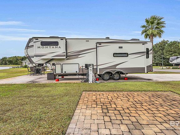 Discover luxury RV living at Lake Osprey RV Resort in Elberta. This deeded lot offers full hookups, a concrete pad, and access to premium amenities including a clubhouse, heated pool, fitness center, and scenic lake views. Conveniently located near Barber Marina, local dining, and Gulf Coast beaches.A 35' 2020 Keystone Montana 3121RL fifth wheel is also available for sale by owner at $37,500, offering a turnkey setup ready for immediate enjoyment. Unit features include three slide-outs, residential-style kitchen, king bed, and modern finishes.Schedule with your favorite agent today! Buyer to verify all information during due diligence.