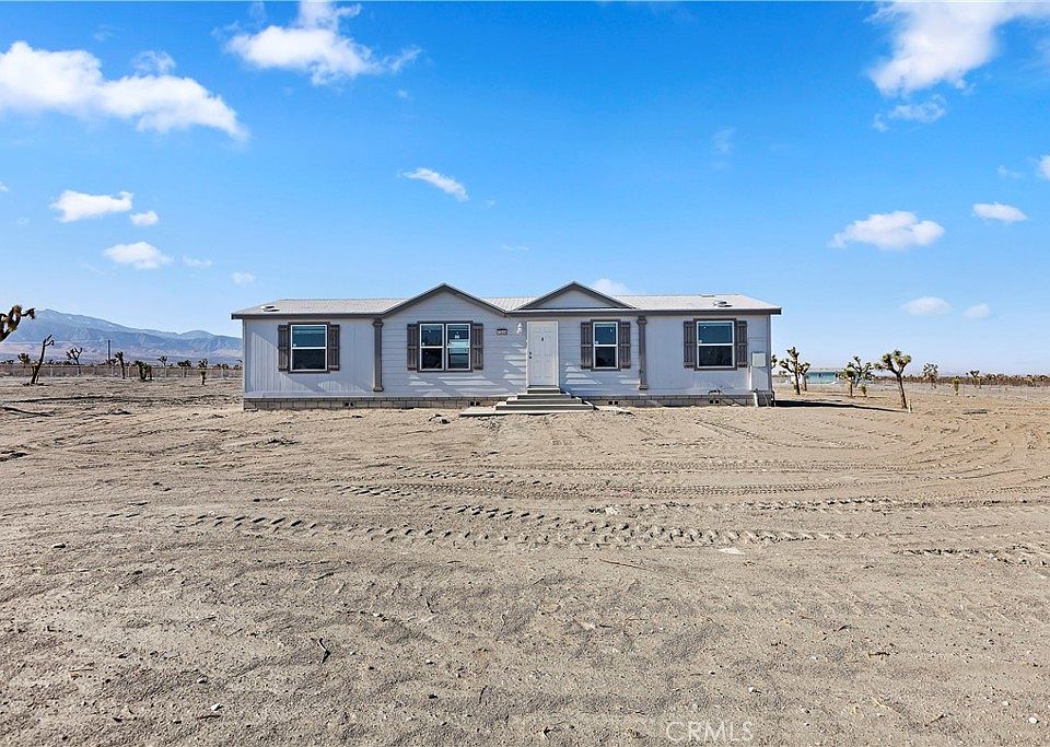 MODERN FARM-HOUSE STYLE 2023 manufactured home on a permanent foundation that gives you approximately 1344 of living space that sits on 1.86 acres. Be the first person to live inside this Open concept floor plan with modern touches. Kitchen has today's popular white cabinets, new Whirlpool appliances, ample amount of space, kitchen breakfast counter bar that is adjacent to the generously sized family room with high ceiling, ceiling fan, and decorative wooden valances. Separate dining room conveniently located next to the kitchen with decorative brushed nickel light fixture, Low-E dual pane windows, cordless top down bottom up window blinds throughout. Laundry room that can fit a full size washer/dryer, and has additional cabinets for storage. Primary bedroom with walk-in closet, primary bathroom dual sinks, white cabinets, separate fiberglass standing shower, and glass shower door. Fully fenced with brand new chain link, double gates to access your private lot that has unlimited possibilities, and will keep your 4-legged fur babies safe. RV parking/access, plenty of open space for your toys, trailers, farm animals (Buyer to Verify Zoning) or build your own garage, workshop, or horse barn or an ADU (Buyer to Verify). Affordable Southern California lifestyle living in this four bedroom, two bathroom that qualifies for All types of financing- - FHA, VA, USDA, CalHFA, and Conventional financing. Act fast and don't miss out on your new secluded rural living with breathtaking sunset views and peaceful living the Pinon Hills area has to offer. Enjoy skiing and snowboarding at Mountain High Resort in Wrightwood during the winter that is a short drive & during the summer escape to Jackson Lake in Wrightwood for fishing and other family activities.