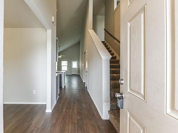 Welcome home to this Beautiful DR Horton built home! First floor has a great open floor plan with a spacious kitchen, living room, dining room & Utility room. Primary bedroom is right off the living room and has a large bathroom & walk in closet. Upstairs you will see a flex space that can be used for an office or sitting area, 3 spacious bedrooms and a full bathroom. Step outside to a good size backyard with no back neighbors. This home has a tankless water heater and has been freshly painted inside. Amenities to residents include: Pool, parks, clubhouse and more! Make your appointment today to tour this beautiful home!
