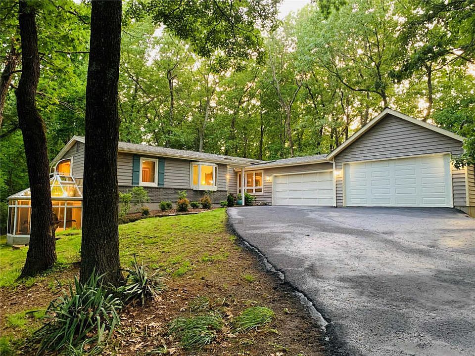 Have you been searching for privacy but want to remain near the amenities of civilization? Then 1187 Briar Patch Road may be the secret hideaway you want. Some of the wonderful features in this well maintained home include: 4 bedrooms - one with a Murphy bed, Master Bedroom Suite, 3 full baths, a conservatory with 6 chandeliers, a sauna, an eat-in kitchen, separate dining area with built-in storage, large family room, spiral staircase, some Pella windows and doors, skylights, hardwood floors, 3 fireplaces/stoves, and a partially finished walk-out lower level. A multi-level deck off the dining area opens to the wooded yard that sits atop a beautiful hill in Ellisville; the deck off the Master Bedroom lets you enjoy a quiet morning or evening retreat just steps from a covered patio. Plenty of storage, separate laundry room, 4 attached garage spaces, and a shed, all on 3.64 acres in the Blue Ribbon and AAA rated Rockwood School District.