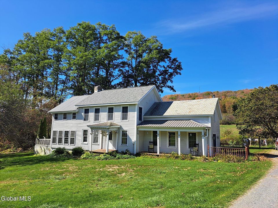 The farmhouse is an ~2,847 sqft home with 4 bedrooms and 3 full baths, which has been modernized over time, yet retains its rural character. Notable features include a grand fireplace and hearth, modern kitchen and dining area, sunroom, and secluded deck.