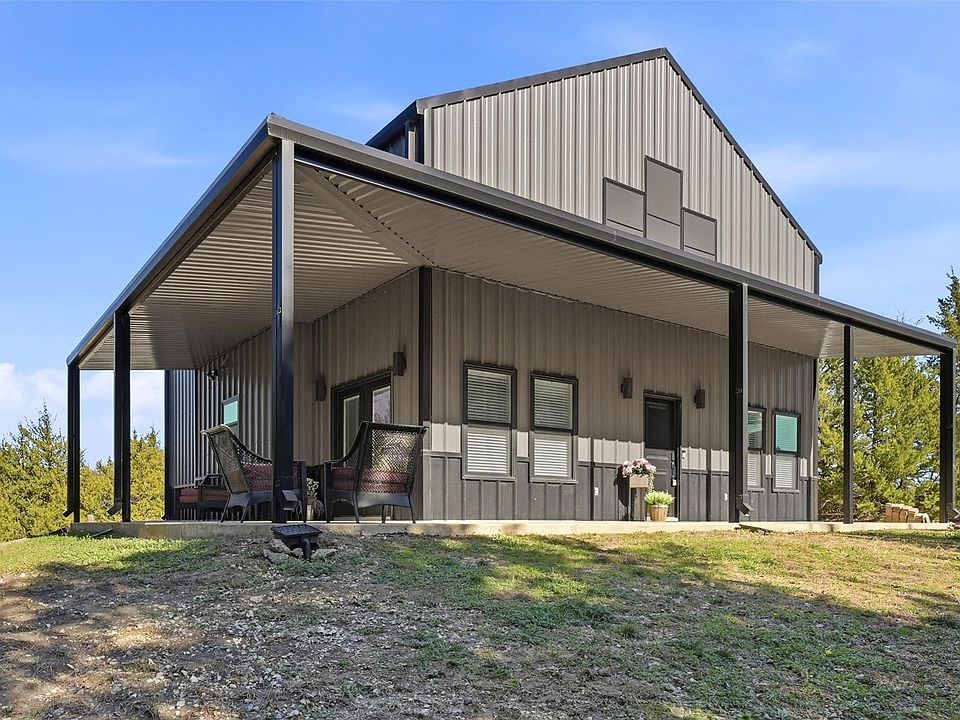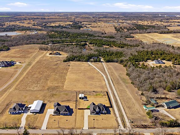 A perfect dream home, hidden in the trees for excellent privacy. This home blends comfort and function with wrap-around porches perfect for morning coffee or evening drinks while soaking in the peaceful surroundings. 5 ac gives you plenty of space to have a barn and fencing for animals. Inside, vaulted ceilings and a striking floor-to-ceiling fireplace create a warm focal point in the open-concept living room and kitchen, ideal for entertaining or relaxing. The kitchen features beautiful countertops, custom cabinetry, and a roomy walk-in pantry for ample storage. Modern convenience meets country charm in every detail. The private primary suite spans the entire second floor, featuring a spacious bedroom, a spa-like en suite with a generous walk-in shower, and a large walk-in closet. Downstairs, the additional bedrooms are spacious and adaptable for family, guests, or a home office. The stylish utility-mudroom includes a built-in pet wash area, while the attached shop-garage provides plenty of space for vehicles, equipment, or hobbies. Just minutes from Hwy 75 to get you easily to McKinney or Sherman.
