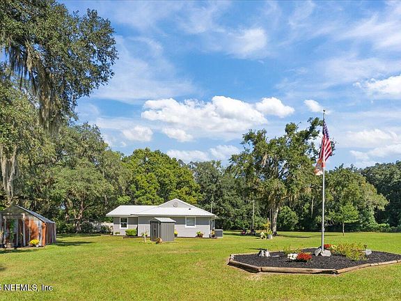 Enjoy CLAY COUNTY schools and tax rates, with Jacksonville/Maxville convenience. Majestic 100+ year old live oak trees and mature azaleas will welcome you home to this updated one-story on 1.69 acres of privacy. Is it your dream to have animals or a vegetable garden? You owe it to yourself to see this one. Enclosed and finished 300+ sqft Florida room almost doubles living area. Renovated and updated kitchen featuring butcher block countertops, updated bathrooms, wide 6ft plank luxury vinyl flooring, fresh paint throughout, new outlets and toggle switches, all new lighting, and camper ready with a 50 amp electric hookup available by back door. Energy efficient double siding with cedar board and batten base and hardy board exterior. Termite deterrent steel frame construction on concrete foundation. Beautiful setting on level lot with plenty of open space for whatever your passion. Move-in ready!