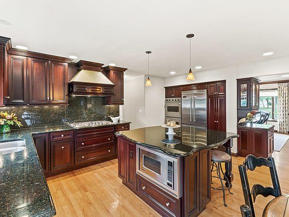 Words can't describe the feeling you'll have when you step into this amazing custom, mostly brick Home with many high-end finishes and upgrades such as a stunning updated eat-in in Kitchen with Viking stainless steel appliances, beautiful custom cabinets, crown molding, large island with breakfast bar, undermount light system, granite counter tops and backsplash, sitting area and bay window, all open to a wide open Family Room with brick gas log fireplace with french doors leading to fabulous Backyard with stamped concrete patio, shed and professionally landscaped yard. Outstanding full, newly finished Basement with wainscoted walls, exquisite bar, huge Rec Room, Work-out Room, bonus area, wood-look ceramic tile, full Bath, and storage area. Formal Living Room and Dining Room with bay window and butler pantry. 1st floor laundry. 4 spacious Bedrooms. Grand Master Suite with tray ceilings, sitting area, walk-in closet and spa-like Master Bath with whirlpool tub, separate shower with multiple jets and double bowl sink. Other fantastic features include: gorgeous remodeled 3.5 Baths, dual zone HVAC system, hardwood floors thoughout most of the 1st floor, crown molding, newer trim and base boards, stunning 2 story Foyer, staircase with wrought iron spindles, attached 2 car garage with epoxy floors, concrete driveway and walking path, copper overhangs and solid wood front door and so much more! Large cul-de-sac lot with great curb appeal! Don't miss out on this gem!!! 2020: 2nd floor Bath remodel, new carpet 2nd floor, 2nd floor painting & new trim; 2018: Basement remodeled; 2016: 1st floor painting & new trim; 2008: Kitchen remodeled. Mechanicals: 2021: furnace blower, dishwasher; 2019: sump pump; 2018: some windows, water heater; 2016: washer, dryer; 2011: roof & skylight; 2008: refrigerator, range, microwave; 2006: 2 A/C units;