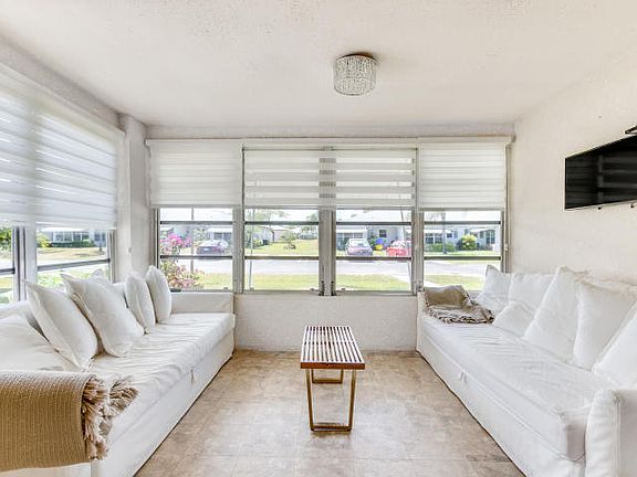 Very large one bedroom with extra bonus room being used as a second bedroom. Florida bright with stunning redesign of kitchen to make unit larger than others of this size. This villa really is one of a kind and shows beautifully.Close to town of Delray Beach and all it has to offer. Best of all this unit can be rented immediately. Windows need some repair and this has been taken into account in the price.